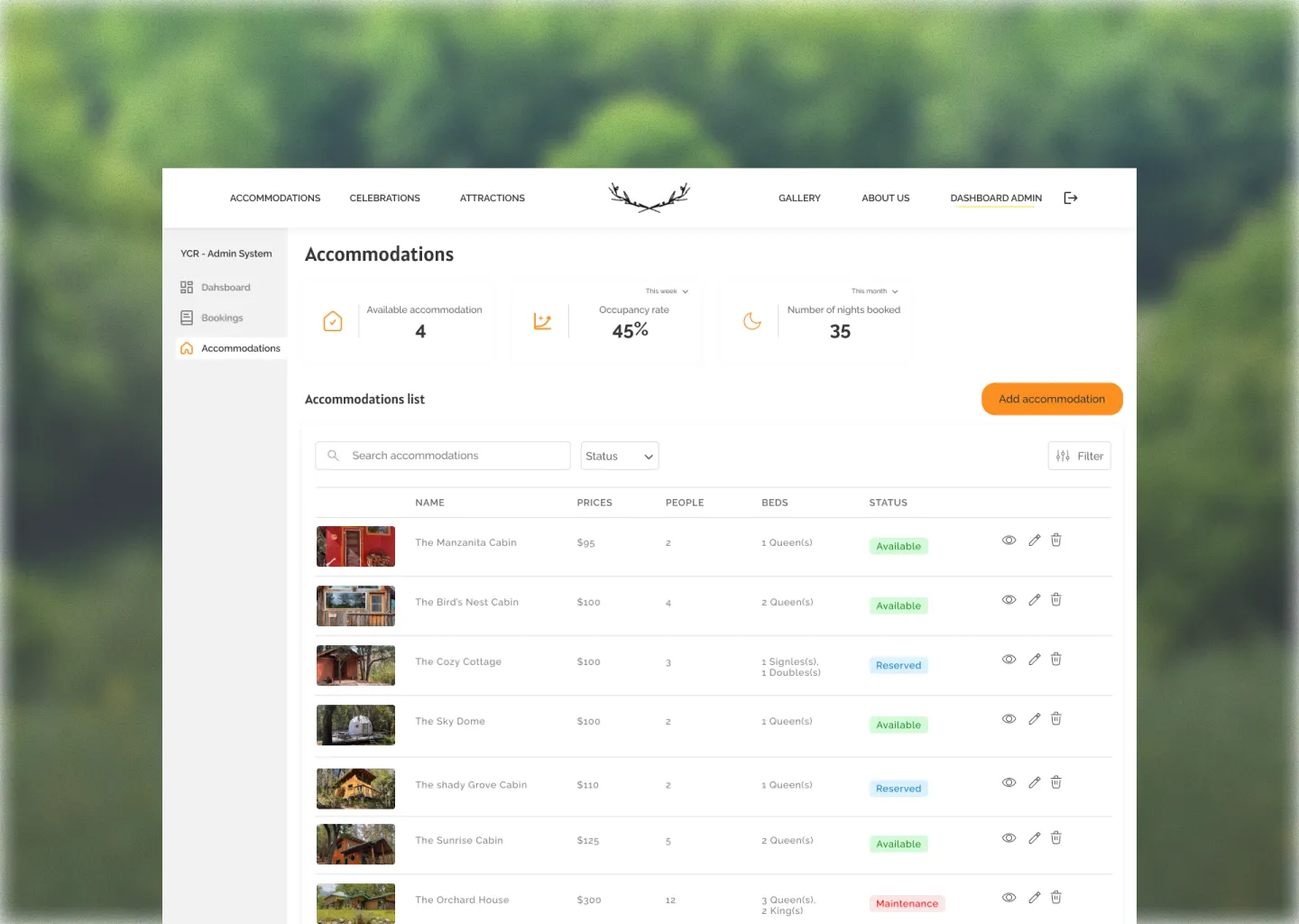 • Gestion des hébergements : mise à jour des descriptions, des images, et des tarifs.